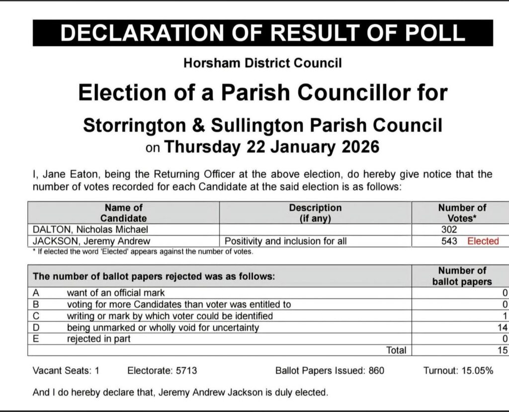 Thank you to everyone who voted for Nick yesterday. Congratulations to Jeremy Jackson on his success and best wishes to him on his future at the Parish Council.